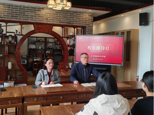 为畅通师生沟通渠道、精准回应学生关切、务实解决学生合理诉求、着力破解实际问题,2026 年 3 月 24 日,文旅体学院举办汪文学副校长接待日活动。本次活动由程守艳院长主持,旅游教研室、体育教研室、文化教研室全体教师及学院学生代表参加座谈交流。
